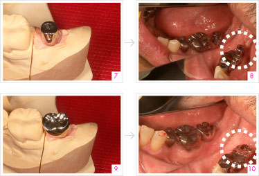 次にジルコニアのキャップを作り、試適します。適合が良いことを確認して、この上にセラミッックの歯を作製します。